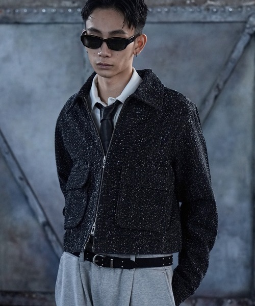 -LANDNESS-【26SPRING / SUMMER COLLECTION】素材の奥行きとシルエットバランスで魅せる、ネップデニムジップジャケット。短丈設計がスタイリングのバランスを引き締める一着。-Design-デニム生地にニードルパンチ加工を施し、ネップ感のある立体的な表情を演出。短めに設定した着丈と、やや長めの袖丈がコントラストの効いたバランスを生み出します。ミリタリーの要素を取り入れたカーゴポケットディテールが、無骨さを感じさせながらもミニマルな印象に。フロントはダブルジップ仕様で、開き方次第でレイヤードやシルエットの変化を楽しめます。背面にはバックボタンを配し、さりげないアクセントをプラス。やや大きめに設計した襟が、首元に程よい存在感を与えます。-Material-13ozのデニム生地に、多数のニードル(針)を打ち込むニードルパンチ加工を採用。表面に凹凸と奥行きが生まれ、シンプルながらも表情のある素材感が特徴です。-Coordinate-同素材のデニムカーゴパンツ(品番:LN26SS010)と合わせたセットアップスタイルも可能。ワイドボトムと組み合わせることで、短丈を活かしたストリートライクなバランスに仕上がります。インナーを覗かせたレイヤードや、同系色でまとめた無機質なスタイリングもおすすめ。足元はボリュームのあるシューズで、全体の重心を低くまとめた着こなしに。【 MODEL HEIGHT - WEARING SIZE 】Model's height: 175cm / Wearing size: L【 Recommended size 】size-S : 160cm – 168cm size-M : 169cm – 174cm size-L : 175cm – 180cm※体型や着用感の好みに合わせて、サイズをお選びください。透け感:なし裏地:なし生地の厚さ:13oz伸縮性:なし光沢感:なし※Attention※撮影場所やライティング、お使いのモニター環境によって色の見え方が異なる場合がございます。