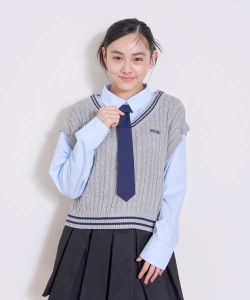 ネクタイつきのシャツをレイヤードしたケーブル編み風のニットです。 ネクタイはボタンで簡単につけ外しができ、気分によって着こなしを変えられます。 マシーンウォッシャブル仕様なので、手軽にお手入れできるのも魅力。 刺しゅうの裏に「あて布」はございません。 【透け感】透けない 【生地の厚さ】普通 【伸縮性】あり 【裏地】なし 【ポケット】なし 【アジャスター】なし