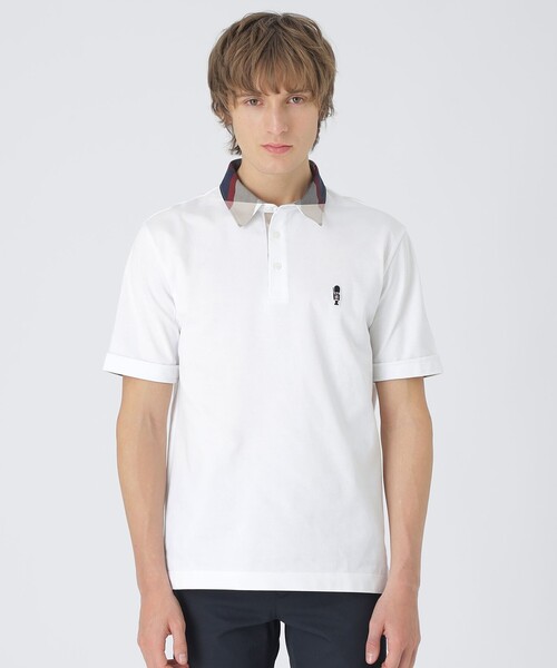 【衿にアイコニックなチェック柄をあしらったポロシャツ】衿部分にクレストブリッジチェックをあしらったブラックレーベルならではの存在感あるデザインのポロシャツ。左胸にはイギリスの衛兵をモチーフにした刺繍をアクセントとしてあしらっています。刺繍にはクレストブリッジチェック柄を掛け合わせ、ブラックレーベルならではのデザインに仕上げました。シンプルながらスタイリングに映える一着に仕上がっています。素材には綿とポリエステル糸を交編したカノコ生地を使用。着心地や風合い等にこだわり編み上げから加工まで日本にて丁寧に仕上げたメイドインジャパンの素材です。