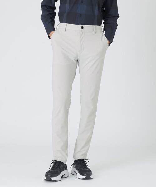 【凹凸のある素材感とストレッチ性が特徴のテクニカルトラウザーズ】ファッション性と機能性を兼ね備えたスポーティーなカジュアルウェアコレクション【BLACK lab.】から、凹凸のある表情が特徴的なイージートラウザーズが登場します。脚のラインを細長く綺麗に見せるスキニーシルエットを採用。ストレッチ性の高い素材を使用し、ウエスト部分にはゴムシャーリングを施している為、細身のデザインでもストレスのない快適な履き心地が特徴の一着です。素材には立体的な表面感が特徴のポリエステルトリコット素材を使用。特殊な編機を使用し、立体的な組織とメッシュ調の組織を組み合わせることで、凹凸が生み出す深い光沢と通気性の高さを併せ持ったこだわりの素材に仕上げています。ストレッチ性も高く、アクティブなシーンにも対応できる1着です。