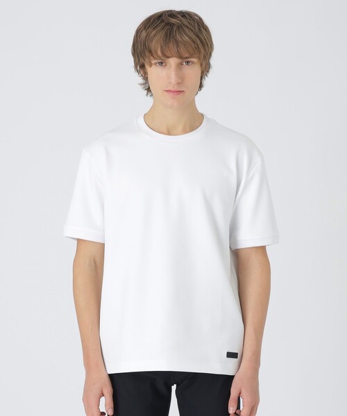 【シャドーチェックをエンボス加工で全面にあしらったTシャツ】全面にシャドーチェックをあしらったTシャツ。エンボス加工による凹凸のみでチェック柄を表現する事で、程良い存在感が特徴。衿や袖口には専用に編み立てたリブパーツを採用。リブならではの組織柄でこだわりのデザインに仕上がっています。コーディネートしやすく、一枚でも十分サマになる着回し力抜群の一着です。素材には3層構造からなるダンボールニットを使用。適度なハリ感と肉感がありながら、軽く膨らみのある風合いが特徴です。ストレッチ性も高く、快適な着心地に仕上がっています。滑らかな表面感と上品な微光沢もポイントです。【BLACK lab.】・・・ファッション性と機能性を兼ね備えたスポーティーなカジュアルウェアコレクション。