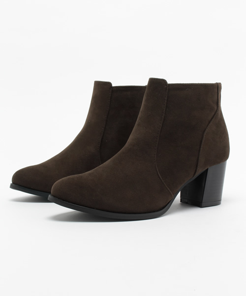 who's who Chico(フーズフーチコ)巧みな切り替えとフェイクスエードの質感で、しっとりと落ち着きのあるエレガントな足元を印象付けたブーティです。バックステイにはアクセントを兼ねたジップを配し、スムーズな着脱に配慮しました。程よく高さのあるヒールは歩きやすいうえ、脚長シルエットにも貢献。シーズンコーデの仕上げとして活躍します。 秋冬に1足はおさえておきたいサイドゴアブート風のシルエットがオススメです。