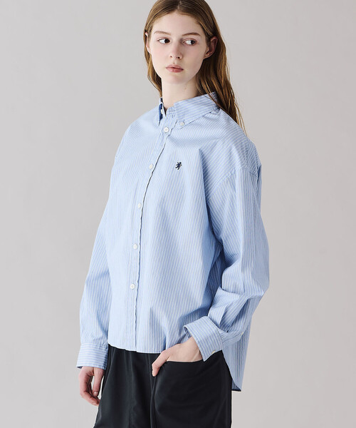 <デザイン>- ショート丈の長袖ボタンダウンシャツ- ボックスシルエット- 刻印入りのボタン- 脇裾のガゼット- 配色のグリフィン刺繍- ラウンドヘム- 前後差のある着丈<素材>- コットン100%のブロードストライプ- しなやかで滑らかな肌触り※着用、お取り扱いの際は商品についておりますアテンションタグ、洗濯ネームを必ずご確認ください。※モデル撮影画像は、光の当たり具合やパソコンなどの閲覧環境によって、実際の色味と異なって見える場合がございます。商品の色味は商品単体で撮影した詳細画像をご参照ください。メーカー品番:#GY-B0198 CBKGymphlex | ジムフレックス1936年軍用ショーツを提供し始め、スポーツウェア・ブランドとして確固たる地位を築く。現在はスポーツというシーンにとらわれず、ユニセックスのカジュアルウェアを展開している。