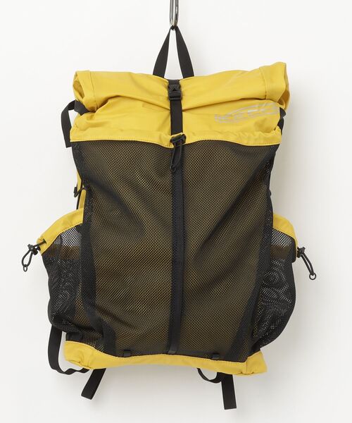 メッシュ素材とナイロン素材を組み合わせたデイパック・PUコーティング、リサイクルナイロン・ナイロン100%・W24-36cm/H69cm/D12cm・軽量で背負いやすい大容量なデイパック。日常使いからアウトドアシーンまで幅広く使え、サイドにはメッシュポケットとバンジーコード付き。NYLON DAYPACK / 1032474(MANGO MINT)