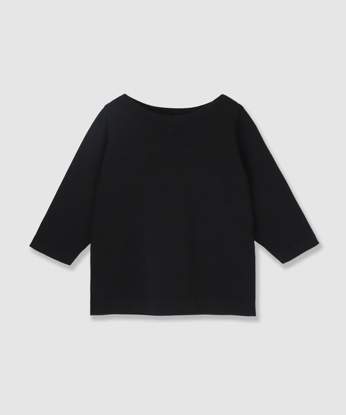 【Spring & Summer Collection 2026】アセテートナイロンのストレッチ素材をハイゲージでしっかり編んだシーズンレスな素材です。ナチュラルな光沢感が上品で、しわになりにくくイージーケアなのもうれしいポイントです。デコルテをきれいに見せてくれるボートネックプルオーバー。6分袖の袖口にメタルボタンをあしらいました。ボクシーなシルエットのプルオーバーは裾の両脇にスリットもあるので、インにしてもアウトにしても着こなせます。【付属】なし【裏地】なし【透け感】なし【開き・留め仕様】なし【伸縮性】あり【ケア方法】手洗い可【着用感・生地の厚さ】ハイゲージですがしっかりしている編地