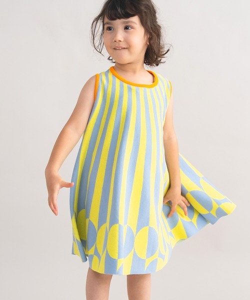カラフルな配色が目を引く、グラフィックノースリーブワンピース。 ライトグリーン×ピンク、サックス×イエローの2カラー展開で、夏らしい明るい印象に仕上げました。 コットン100%素材を使用。 ノースリーブ仕様で涼しく、Aラインシルエットがふんわりと広がり、動くたびに軽やかな表情を楽しめます。 1枚でさらっと着るのはもちろん、インナーにブラウスを重ねたり、カーディガンや付け衿を合わせたアレンジもおすすめ。 季節やシーンに合わせてコーディネートの幅が広がります。 ご自宅で洗えるマシンウォッシャブル仕様なので、お手入れも簡単。 デイリーからお出かけまで活躍する、着回し力の高いワンピースです。 ami amie(編み編み)はニットのキッズブランドです。 子供の知的好奇心も発育させるカラフルで ハッピーなデザインのニットを提案しています。 ami amieはフランス語で「友達」という意味です。 お友達と一緒にいるような楽しい感覚のニットを 作っていきたいと思っています。