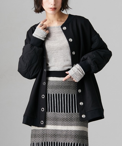 ■デザイン ・袖がキルティング切替になった異素材ミックスのゆったりジャケット ・フロントは大きめのスナップボタンで、カジュアルながらモード感のあるアクセントに ・オーバーサイズシルエットで、体を包み込むようなリラックスした着心地 ・ドロップショルダーで肩のラインがきれいに落ち、抜け感のあるシルエットに ・ヒップまで隠れる丈感で体型カバーにも◎ ■素材 ・身頃は柔らかくて着心地の良い裏毛素材で、ロングシーズン使える万能質感 ・袖部分は軽くて暖かい中綿入りキルティングで、ほどよいボリューム感がポイント ・異素材の組み合わせがシンプルコーデの主役になる一枚 ・肌触りがやさしく、デイリー使いしやすい軽さも魅力 ■おすすめのスタイリング ・ロングTや薄手ニットの上から羽織るだけでトレンドのミックススタイルに ・ワイドパンツとゆる×ゆるでまとめるとモード感が一気にアップ ・スカート合わせでカジュアルフェミニンにも楽しめる万能アウター ・モノトーンカラーで統一すると、より大人っぽい雰囲気に仕上がる 【Soiunique/スワユニーク】唯一無二のアナタへ――― カジュアル×モードスタイルをベースに、 ストレスフリーなサイズ設計で どこかに”抜け感”と”格好よさ”を感じさせる商品をご提案 体型カバーやスタイルアップも叶えつつ、 コンプレックスを個性にして自分のスタイルを貫く唯一無二のアナタへ <仕様> [本体]綿100%(織物)[キルト]ポリエステル100%[リブ]綿95%・ポリウレタン5% 前ボタン開き 柄の出方が多少異なる場合があります。 透け感:なし 伸縮性:なし 生地の厚み:普通 光沢感:なし 裏地:なし ポケット:あり(両脇2) 季節:春・秋・冬向き シルエット:普通 <洗濯方法> 洗濯機OK ネット使用 ■キーワード レディース、ファッション、アウター、ジャケット、20代、30代、40代、50代、60代、70代、Soiunique、お洒落、かわいい、ぽっちゃり、ゆったりサイズ、ゆるっと、オーバーサイズ、オーバーシルエット、カジュアル、シンプル、スワユニーク、デイリー、ベーシック、モード、ラフ、体型カバー、定番、日常使い、日常着、普段着、楽ちん、華奢見せ、キルト、キルティング、裏毛、春、秋、冬
