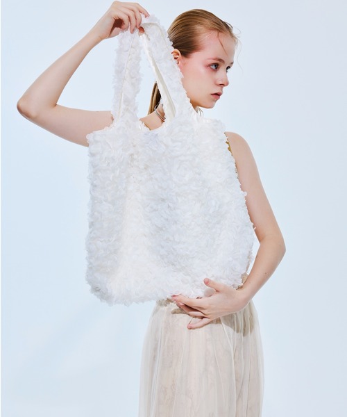 トートの表面いっぱいにオーガンジーのフラワーモチーフをあしらった、存在感のあるバッグ。 繊細な立体感がスタイリングにロマンティックなムードを添え、持つだけで表情までやわらかく見せてくれます。 軽やかな使い心地と十分な収納力を兼ね備え、デイリーにも取り入れやすいのが魅力。 開口部はマグネット仕様でスムーズに開閉でき、内側にはファスナーポケットを備え、小物の整理もスマートに。 【HELOYSE】 HELOYSEは、2011年にニューヨークSOHOからスタートしたTOKYO発のファッションブランドです。 自由と開放感・ユニークで実験的・洗練・誘引力の4つをコンセプトにバッグを展開。HELOYSEが目指すのは 持つ人、そしてHELOYSEに関わる人が幸せになれるバックです。シーズン毎に印象的なデザインのバックを生み出しファッションコンシャスなニーズに応えます。