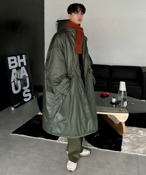 "【NOWLE】ウエストマーク 中綿 スタンドカラー ロングコート ■ 洗練された光沢が放つ都会的なミリタリースタイル都会の街並みに映えるやや光沢感のあるナイロン素材を表地に採用しました。ミリタリーの定番であるM-65フィッシュテールパーカーの意匠を継承しつつ、上品な質感を加えることでカジュアルすぎない大人のアーバンスタイルを演出します。滑らかなポリエステルの裏地は袖通りが良く、厚手のニットの上からもストレスなく羽織れる仕上がりです。 ■ 自由自在にシルエットを操るドローストリングウエストと裾の両方に紐を通したドロスト仕様により、その日の気分やコーディネートに合わせてシルエットを自在にアレンジできます。ウエストをキュッと絞ればメリハリのある女性らしいラインが際立ち、裾を絞れば冷気の侵入を防ぎつつ丸みのある柔らかなフォルムへと変化します。一着で何通りもの表情を楽しめるのがこのコートの大きな魅力です。 ■ 暖かさを封じ込める波型キルティングの魔法内側には丁寧に施された波型のキルティング構造を採用し、たっぷりと中綿を詰め込みました。このキルティング加工が中綿の偏りを防ぎ、体温を均一に保ちながら確かな保温力を発揮します。真冬の冷え込む日でも、羽織った瞬間に包み込まれるような安心感のある暖かさを提供します。 ■ スタイリングの幅を広げるダブルジップの機能美フロントは上下どちらからでも開閉可能なダブルジップ仕様になっており、着こなしに抜け感をプラスできます。下のジップを少し開けることで足さばきが良くなるだけでなく、インナーを見せるレイヤードスタイルもスマートに決まります。機能性とファッション性を両立させたこだわりのディテールが、日常の動作をより軽やかに彩ります。 【NOWLE(ノウル)】 now+owlの造語で幸福の鳥owl(フクロウ)をモチーフにしたブランド名""今""と""幸福""を大切にという想いを込めて立ち上げたセレクトブランドです。 【NOWLEの新着情報について】 ▼商品のお気に入り登録 完売カラーの再入荷通知や、ラスト1点の通知、セールの通知も受け取ることができます。 ▼ブランドのお気に入り登録 新商品や再入荷等、いち早く""NOWLE""のお得な情報を受け取ることができます。 ※こちらの商品の画像はサンプルを使用しているため、一部製品と仕様が異なる場合がございます。ご覧のモニター環境や撮影環境により実際の商品と多少色味が異なって見える場合がございます。この点をご了承の上、お買い求めください。ご理解の程よろしくお願いいたします。 ポイントロングコート モッズコート ミリタリーコート フィッシュテールパーカー M-65 パディングコート 中綿コート アウター レディース メンズ ユニセックス オーバーサイズ ビッグシルエット アーバンミリタリー カジュアル 綺麗め ストリート ナイロン シャイニー素材 光沢感 撥水 防寒 保温 中綿入り 裏キルティング 波型キルティング 瓢箪キルト ダブルジップ 2WAY Wジップ スタンドカラー ハイネック 立ち襟 ウエストマーク ウエストドロスト 裾ドロスト シルエット調整 着痩せ 体型カバー ロング丈 膝丈 マキシ丈 軽量 軽い 暖かい 春 冬 秋 CZ_0008"