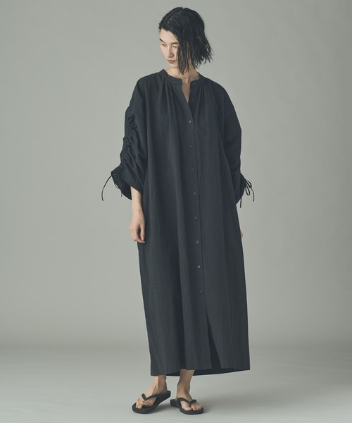 袖のシャーリングでニュアンスを変えられる軽やかなコットンヘンプの万能ワンピース ■デザイン ・ストンとしたゆとりのあるシルエットが魅力のバンドカラーワンピース。 ・たっぷりとした分量の袖は、シャーリングでレングスの調整が可能。 ・そのままワンピースとして着用するだけでなく、季節の変わり目のスプリングコートとしても活躍。 ・太めのベルトを腰の位置で合わせて、ブラウジングを楽しむ着こなしもおすすめ。 ■素材 / お手入れ方法 ・環境に配慮した、程よいハリ感とワッシャー感のあるコットンヘンプのタイプライター素材。 ・丈夫で軽く、通気性と吸水力に優れた天然素材ならではの機能性が特徴。 【Curensology(カレンソロジー)】 旅とは、非日常と日常の間を行ったり来たりしながら、その土地の空気や風景、文化、歴史、そして出会いを、五感のすべてを使って受け止めること。「カレンソロジー(Curensology)」は、そんな旅をイメージした、知的でエレガントな女性のためのワードローブとテキスタイル ※サンプルにて撮影をしておりますので、実際の商品とは仕様や加工・サイズ等が若干異なる場合がございます。 ※屋外の光や照明の当たり具合で、実物と色味が異なって見える場合がございます。詳細画像の色味をご確認ください。 なお、商品の色や質感を出来るだけ忠実に再現するよう心掛けておりますが、パソコンなどの環境により、実物と若干異なる場合がございます。 ▼商品のお気に入り登録をおすすめします▼ ♡をクリック!完売カラーの再入荷や、ラスト1点の通知、セールの際の通知を受ける事ができます。ブランドのお気に入り登録もご一緒にお願い致します。