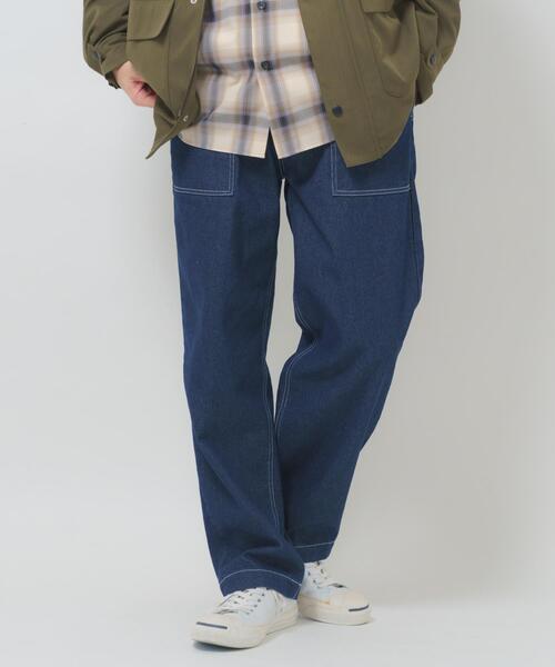 春スタイルを格上げする、デニムベイカー。フロントの大きなパッチポケットが印象的なデニムベイカーパンツ。ワーク由来のディテールを活かしながら、配色ステッチでクリーンな印象に仕上げています。ゆとりのあるワイドストレートシルエットは、リラックス感がありながらも野暮ったくならない絶妙なバランス。しっかりとした肉感のデニムは穿き込むほどに風合いが増し、経年変化も楽しめます。どんなトップスも幅広く合わせやすく、シーズンレスで活躍する一本です。【2026 Spring/Summer】【26SS】※この商品は染色の特性上、着用中の摩擦や汗などにより他の衣類や下着、淡い色のベルトやカバン、ソファーなどに色移りすることがあるので、コーディネートや取り扱いにご注意ください。※色落ちすることがあるので洗濯の際は他の物と一緒に洗わないでください。※その他お取り扱いに関しましては、商品に付属のアテンションタグをご覧ください。※商品画像は、光の当たり具合やパソコンなどの閲覧環境により、実際の色味と異なって見える場合がございます。予めご了承ください。※商品の色味の目安は、商品単体の画像をご参照ください。▼お気に入り登録のおすすめ▼お気に入り登録された商品は、マイページにて現在の価格情報や在庫状況の確認が可能です。お買い物リストの管理にぜひご利用ください。素材感透け感 : なし伸縮性 : なし裏地 : なし光沢 : なしポケット : ありML