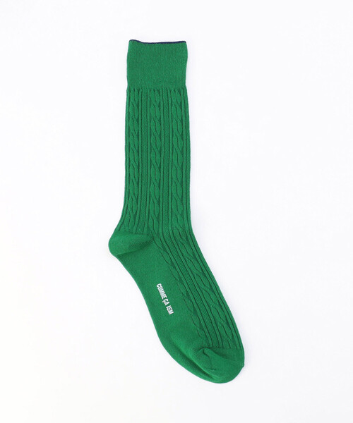 《デザイン》 立体的でトラディショナルな編み模様が施されたケーブル編みソックスです。 履き口リブ縁を配色にし程良いアクセントにしています。 清潔感がありほぼ無地見えなので、悩まずコーディネートに合わせられます。 レッドやグリーンは、ブルーデニムやベージュ、カーキカラーのパンツにピッタリです。 《素材》 肌触りが良く、吸水性に優れた綿と速乾性に優れたポリエステルの混紡糸でサラッと履き心地の良いソックスです。 《取り扱い注意》 濃い色の物は淡色の物と分けて洗い、蛍光剤の入っていない洗剤を使用して下さい。 ドロ汚れがひどいときは洗濯前に軽く水洗いし、簡単に汚れを落としておきましょう。 染み込んだ汚れの場合は、洗濯液(洗剤を30℃位のぬるま湯によく溶かしたもの)に1時間ほどつけおきするとよいでしょう。 色落ちする場合もありますのでご注意ください。 ※画像の商品はサンプルとなりますので実際の商品と仕様、加工、サイズが若干異なる場合がございます。 ※こちらの商品はFIVE FOXes独自の採寸方法となっています。 本サイトのサイズガイドと採寸方法が異なる場合がありますのでご了承ください。
