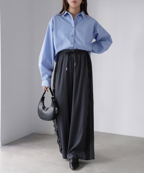 【Riberry サイドレースラインパンツ】 \サイドにあしらったレースラインが上品なアクセント/ さらっとした落ち感素材で、楽なのにきれい見えが叶うトレンドパンツ♪ ■Styling サイドに施された繊細なレースラインが、シンプルながらも華やかさを添えるデザインパンツが登場しました。 程よく甘さのあるレースとさりげなく入ったプリーツディテールが縦のラインを強調し、脚をすらっときれいに見せてくれます! シルエットはワイドすぎず、落ち感のあるストレートライン。 スタイルアップ効果はもちろんカジュアルになりすぎず、きれいめにも合わせやすい万能デザインです。 レース部分は甘くなりすぎないよう、同色系でまとめることで大人っぽく仕上げています♪ ロゴTシャツやシアートップスを合わせて、程よく抜け感のあるカジュアルスタイルに。 ブラウスやとろみシャツと合わせれば、きれいめフェミニンなコーデも楽しめます! ショート丈トップスやコンパクトなニットを合わせると、ハイウエストデザインが活きたスタイルアップコーデに◎ 足元はフラットサンダルでラフに、パンプスやバレエシューズで上品にまとめるのもおすすめです。 シンプルな中にさりげない女性らしさをプラスしてくれる、トレンドの着回し力の高い一枚です! ■Detail ウエストは総ゴム仕様で、締め付け感が少なく快適な穿き心地。 ハイウエストでも着用できるため、トップスをインしたスタイリングもバランスよく決まります。 サイドのレースとプリーツデザインが縦のラインを強調し、脚長効果も◎ デイリー使いはもちろん、お出かけや旅行シーンにもおすすめです。 ■Material 生地はやや光沢感のあるさらっとした素材を使用。 落ち感があり、動くたびに軽やかに揺れるため、リラックス感がありながらも上品な印象に仕上がります。 ポリエステル素材ならではのシワになりにくさも魅力でロングシーズン快適に着用いただけます! ▽生地感 透け感:あり 〇〇〇〇● なし 生地の厚さ:厚い 〇〇〇●〇 薄い 裏地:なし 伸縮性:なし ※この素材は性質上、発汗、摩擦等により、ほかの衣料やバッグなどに多少色落ちや色移りする場合がありますので、十分にご注意下さい。 ※商品の梱包には細心の注意を払っていますが、通販の特性上、到着時に畳みシワがついている可能性がございます。予めご了承ください。 ※お肌のデリケートな方は刺激を感じる場合がございます。 ※詳しいお手入れ方法は商品タグをご参照ください。 【Information】 ◆《お気に入り登録》がオススメ◆ ・「商品のお気に入り登録」で再入荷通知や、ラストの通知、セール通知も受け取ることが出来ます。 ・「ブランドのお気に入り登録」で新商品や再入荷など、お得な情報を受け取ることが出来ます ※撮影時のライティング、太陽光、ご覧になっているモニター・PC環境により、実際の商品と色味が異なって見える場合がございます。予めご了承をお願い致します。