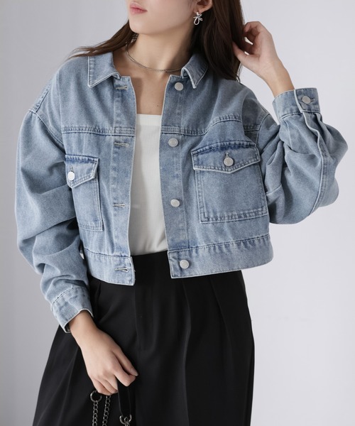 【Riberry ショート丈デニムジャケット】 \ショート丈で叶える、バランス美/ 羽織るだけで腰位置を高く見せてくれる、今っぽデニムジャケット♪ ■Styling コンパクトなショート丈が今の気分にフィットする、バランス上手なデニムジャケットが登場しました。 オーバーすぎない程よい身幅と、計算されたボリューム感のある袖が、カジュアルながらも女性らしい印象に。 フロントにはベーシックなボタンデザインとフラップ付きポケットを配置し、バックスタイルにはさりげなくシルエット調整ができるベルトディテールをプラス。 後ろ姿まで抜かりなく、シンプルながらもこなれた印象を演出します。 ステッチやウォッシュ感にもこだわり、カジュアルすぎず大人っぽく着られる仕上がりに。 ショート丈なので、ハイウエストボトムとの相性は抜群。 ワイドパンツやフレアスカート、マーメイドスカートと合わせれば、メリハリのあるバランスコーデが簡単に完成します。 ワンピースの上に羽織れば、ウエスト位置が引き上がり、スタイルアップ効果も◎ インナーにはロゴTやシアートップス、タンクトップを合わせて季節感のある着こなしがおすすめです。 足元はスニーカーでカジュアルに、パンプスやブーツで大人っぽくまとめるのも相性抜群! シーズンを問わず、ワードローブに一枚あると重宝する万能デニムジャケットです。 ■Detail フロントはスナップボタン仕様で、開け閉めしやすく、ラフに羽織れるのが魅力。 胸元にはフラップ付きポケットを配置し、デニムジャケットらしい王道ディティールを押さえつつシンプルで合わせやすい印象に仕上げました。 後ろにはベルトがついていてキュッと絞ればすっきり見える、後ろ姿まで着映えする仕様。 腰の位置を高く見せてくれる短めレングスで、羽織るだけでスタイルアップが叶う一着です。 ■Material 素材には綿、ポリエステル、レーヨン、ポリウレタンを程よくブレンド。 デニム特有のしっかり感を残しつつ、レーヨンの柔らかさをプラスすることで、見た目以上に軽く、ストレスフリーな着心地を実現しました。 長時間着用しても窮屈さを感じにくく、デイリーに活躍する素材感です。 ▽生地感 透け感:あり 〇〇〇〇● なし 生地の厚さ:厚い 〇〇〇●〇 薄い 裏地:なし 伸縮性:なし ※この素材は性質上、発汗、摩擦等により、ほかの衣料やバッグなどに多少色落ちや色移りする場合がありますので、十分にご注意下さい。 ※お肌のデリケートな方は刺激を感じる場合がございます。 ※商品の梱包には細心の注意を払っていますが、通販の特性上、到着時に畳みシワがついている可能性がございます。ご理解ください。 ※詳しいお手入れ方法は商品タグをご参照ください。 【Information】 ◆《お気に入り登録》がオススメ◆ ・「商品のお気に入り登録」で再入荷通知や、ラストの通知、セール通知も受け取ることが出来ます。 ・「ブランドのお気に入り登録」で新商品や再入荷など、お得な情報を受け取ることが出来ます ※撮影時のライティング、ご覧になっているモニター・PC環境により、実際の商品と色味が異なって見える場合がございます。予めご了承をお願い致します。