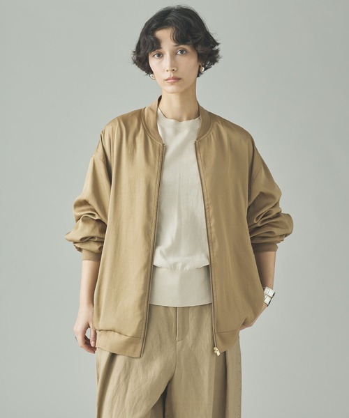 WEB先行予約受付中2026 SPRING&SUMMER COLLECTIONシルクのような光沢と落ち感が魅力の大人仕様なMA-1ブルゾン■デザイン・シルクのような落ち感と程よい光沢のあるポリエステル素材で仕上げたMA-1タイプのブルゾン。・総裏仕立てを採用することで、薄手ながらも暖かく端境期の羽織りとして重宝する一着。・長めの着丈で、カジュアルすぎず大人っぽい印象を演出。・フロントファスナーは上下で開閉可能なWリバース仕様。・幅広いアイテムと相性が良く、きれいめなコーディネートのカジュアルダウンにも最適。・機能性とデザイン性を両立し、日常のスタイルをアップデートする万能なシルエット。■素材 / お手入れ方法・シルク特有のきしみ感と上品な光沢を持つ糸で織り上げたツイル素材を使用。・きれいめな光沢感がありつつ、ラフな加工を施すことで程よいカジュアル感を表現。・軽やかな着心地でありながら、高級感のあるテクスチャーが魅力。・シワになりにくく、デイリーユースしやすいポリエステル素材を採用。【Curensology(カレンソロジー)】 旅とは、非日常と日常の間を行ったり来たりしながら、その土地の空気や風景、文化、歴史、そして出会いを、五感のすべてを使って受け止めること。「カレンソロジー(Curensology)」は、そんな旅をイメージした、知的でエレガントな女性のためのワードローブとテキスタイルを提案。バカンスや出張に持っていきたい機能的なアイテムをはじめ、日々の暮らしをアップデートする新しいデザイン、着心地の良いエッセンシャルなものなどを展開しています。※サンプルにて撮影をしておりますので、実際の商品とは仕様や加工・サイズ等が若干異なる場合がございます。※屋外の光や照明の当たり具合で、実物と色味が異なって見える場合がございます。詳細画像の色味をご確認ください。 なお、商品の色や質感を出来るだけ忠実に再現するよう心掛けておりますが、パソコンなどの環境により、実物と若干異なる場合がございます。▼商品のお気に入り登録をおすすめします▼♡をクリック!完売カラーの再入荷や、ラスト1点の通知、セールの際の通知を受ける事ができます。ブランドのお気に入り登録もご一緒にお願い致します。
