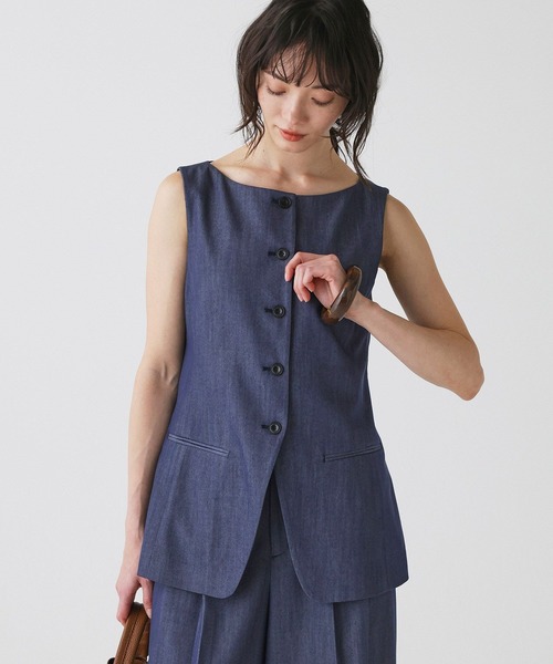 2026 SPRING COLLECTION◆DETAILポイント◆・カジュアル過ぎずきちんと感のある、ソフトレーヨンストレッチ素材のジレ。・身体のラインを拾いにくい程良いシルエットがポイント。・襟ぐりは抜け感のあるボートネック。◆FABRICポイント◆・ベージュ/ダークブラウンリネン混レーヨンストレッチ素材。リネンならではの粗野な表情に、レーヨンの光沢感とストレッチ感がプラスされた上品な素材感。・デニムブルーレーヨン混ソフトデニム素材。さらりとした肌触りで真夏にも着やすい素材感です。◆セットで着用いただけるアイテム (※別売り)◆ソフトレーヨンパンツ 品番#646603リネンレーヨンスカート 品番#638326◆おすすめコーディネート◆・同素材スカートとセットアップ提案。・デニムなどカジュアルボトムとのコーディネートも楽しめます。※商品の取り扱い方法につきましては、タグ等に記載されている「取り扱い上の注意」「洗濯表示」をご確認ください。※屋外での撮影画像は、光の当たり具合で色味が違って見える場合があります。あらかじめご了承ください。なお商品の色味は、スタジオ撮影の画像をご参照ください。