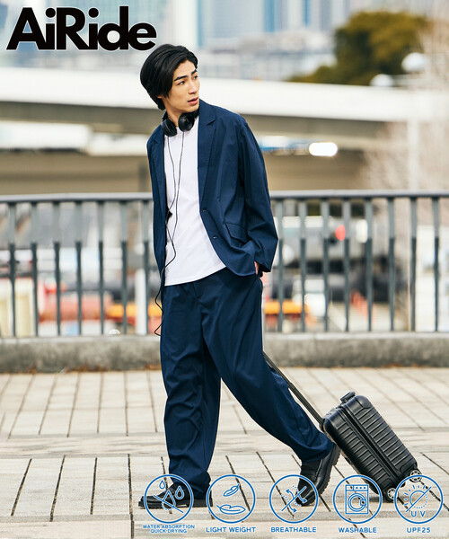 限定展開 AiRide/エアライド リラックスフィット ポケッタブルトラベルセットアップ/テーラードジャケット/ワイドテーパードパンツ/吸水速乾/UVカット