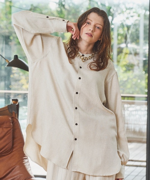Casper John 2026 Spring and Summer Collectiontriple standard【Over band collar shirts/オーバーバンドカラーシャツ】ポリエステルのイージーケア要素に麻の質感を忠実に表現したイミテーションリネンを使用自然なシワ感まで再現しつつも着用感は滑らかで快適です。極端に大きく設計したオーバーシルエット1枚でもレイヤードでも存在感を示す春の主役級シャツです。《BRAND CONCEPT》CREATIVE / MODE / URBAN をコンセプトに、トレンドに敏感な都会人、常に新しいファッションを求める方に、遊び心を追及した創造性の高いモードスタイルを提案する。