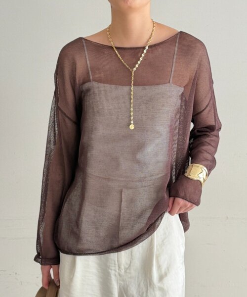 大人の抜け感を演出する、ギマルーズニット ■デザイン 軽やかな糸、編地のルーズニット。 ゆったりとしたシルエットでリラックス感も演出できます。 キャミソールやキャミワンピースとのレイヤードに好相性です。 抜け感のあるシンプルなデザインになっています。 一枚取り入れるだけで、トレンド感のあるスタイリングが完成します。 ■コーディネート Tシャツやカットソーの上に合わせて、カジュアルなレイヤードスタイルに。 ワンピースの上に合わせて、フェミニンな印象に。 アクセサリーや小物でアクセントの重ね付けもおすすめです。 ■素材・洗濯表記 素材:綿100% 洗濯表記:手洗い可 ●陰干ししてください。 ●タンブラー乾燥は避けてください。 ●アイロンの際は、当て布をしてスチーム掛けしてください。 ●アイロンの際は、低温で当ててください。 ●汗や水、摩擦により他のものに色移りすることがありますのでご注意ください。 〈ニット製品〉 洗濯はドライクリーニングをお勧めしますが、手洗いの際は次の点にご注意ください。 ●洗濯液は30℃のぬるま湯で、中性洗剤を十分に溶かしてから洗って下さい。 ●手洗いの場合は裏返しにして折りたたみ、片側をそれぞれ20回程度押し洗いをしてください。 ●絞りは、遠心脱水機で1分程度にしてください。 ●洗濯後は形を整え日陰で平干しにしてください。 ●アイロンは、当て布の上から中温でかけてください。 ギマ製品は、一般の糸に比べて「粉落ち」が目立つ場合があります。 これは、糸をテープ状に接合している糊粉末が滑落するためです。 濃色と淡色の重ね着では、この粉落ちによる色移りにご注意ください。 【お気に入り登録でお得な情報をお知らせいたします 】 完売カラーの再入荷やラスト1点の通知、セールの通知を受けとることができます。 【ブランドのお気に入り登録】 新商品や再入荷、いち早くセールやクーポンなどのブランドの情報を受けとることができます。 生産の都合上、お届け時期が前後する場合がございます。 システムの都合上、店舗より入荷が遅れる場合がございます。 実際にお届けする商品と仕様やサイズが異なる場合がございます。 照明や光の当たり具合で色味が違って見える場合があります。