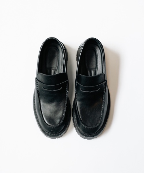 【SPRIT LEATHER LOAFER】DESIGNベーシックかつ洗練された最も定番なデザインであるコインローファー。クラシックなディテールながらも脱ぎ履きのしやすい抜け感のあるアイテムなので、カジュアルなスタイリングにも落とし込んでいただけます。ソールには約5cmとボリューム感のタンクソールを採用し、フルレングスのボトムス合わせでも存在感を放ちます。FABRICアッパー部分にはコーティングを施した牛床革(スプリットレザー)を使用。本革のような質感と、雨や汚れに強い耐久性を兼ね備えた高品質な素材です。エイジングは期待できませんが、手軽に革製品を楽しみたい方にオススメな一足に仕上がりました。【cii / シー】Casper Johnから誕生したグッズレーベル。アクセサリー、バッグ、シューズといった雑貨類全般をデザイナー独自の解釈で幅広く展開。※長時間の無理な歩行はソールの劣化・破損につながる可能性がございます。※画像につきましては、光の反射等により実物と色味が異なって見える場合がございます。〈商品のお気に入り登録〉在庫が少なくなった場合や再入荷、セールなどの通知を受け取ることができますので是非ご登録をお願いいたします。