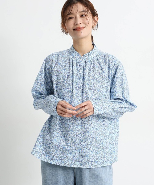 毎回好評のシングルガーゼシリーズが今季も登場!インナーとしても大活躍な襟フリルブラウスーーー【素材】レピア織機でゆっくりと織りました。柔らかで膨らみのある優しい風合いが特徴です。【デザイン】毎回好評のシングルガーゼシリーズから、春の定番ブラウスが登場!一枚ではもちろん、顔周りが華やかになる小さなフリル襟は、インナーブラウスとしても大活躍。スタイリングに使いやすい優しい春カラー展開です。インナーとして着用しやすい程よいサイズ感もポイント◎トップス シャツ ブラウス フリル 花柄ーーー【スタイリング】定番のデニムパンツやチノパンと合わせた春らしいスタイリングがおすすめ。ベストやカーディガン、スウェットのインに着用し、襟のフリルデザインをちらっと見せた着こなしも素敵です。