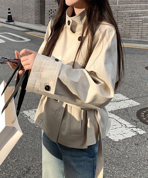 ウエストマークで差がつく、韓国風ショートジャケット■Designショート丈のトレンチコート。クラシカルなダブルブレスト風デザインにシングルボタン仕様で軽やかな着心地を実現。スタンドネックとウエストベルト付きで、メリハリのあるシルエットを演出。■Detail・ダブルブレスト風のフロントデザイン・シングルボタン仕様でスッキリとした着用感・ウエストベルト付きでスタイルアップ・袖口ボタンデザイン・裏地付きでロングシーズン対応■Stylingデニム合わせで韓国ストリートに。スラックスやロングスカートで大人カジュアルにも■カラーベージュ★商品をお気に入り登録する★お気に入り登録しておくと、完売商品の再入荷通知を受け取れます。さらに、ラスト1点・セール時にも通知が来るから、買い逃すことがありません!★ブランドをお気に入り登録する★新入荷・再入荷など、WESTSEAでのお得なブランド情報をいち早くお知らせ。