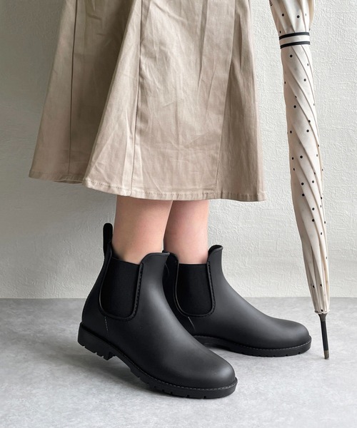 水と汚れに強いPVC素材を使用したサイドゴアデザインのレインブーツです。着脱しやすいショート丈。 ベーシックなデザインなので様々なスタイリングに合わせやすく、雨の日でも安心しておしゃれを楽しめます。 ※完全防水で社ありません。 ※撮影は室内で行われており、ライティングにより実物と色味が少し異なる場合がございます。