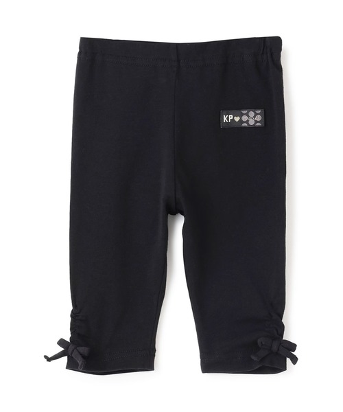 ベア天竺素材の穿きやすい6分丈スパッツ。伸びの良い生地で動きやすく、デイリー使いにぴったりです。裾の両脇にギャザーを寄せ、共地リボンを付け、さりげない可愛さをプラス。チュニックやワンピースとの相性もよく、いろいろなコーディネートに採り入れやすい1枚。色違いで揃えるのもおすすめです。