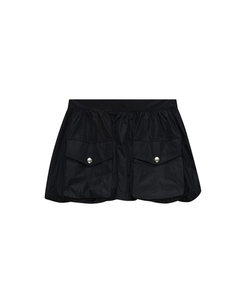 光沢とハリのあるタフタが軽やかに際立つ、バルーンシルエットのミニスカート。フロントに配したフラップポケットが程よい存在感を添え、フォルムに奥行きをプラス。合わせるトップス次第でムードを変えながら、シルエットのコントラストでスタイルを軽快に整える一着。・タフタ素材(光沢とハリのある質感)・バルーンシルエット・フロントフラップポケット・サイドファスナー・レギュラーフィット・カラー:ライトブルー/ブラック・セットアップ対応:同素材トップス/パンツ・2026春夏Pre Collectionモデルサイズ:身長177cm バスト84cm ウエスト66cm ヒップ90cm着用サイズ:40