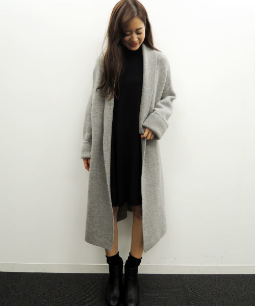 女っぷりで色気を引き出すガウンニットコート!さっくり羽織れる脱力系のシルエットは、流行りのロング丈でスタイルカバーと、只者ではないオーラを放ちます。ショール風のカラーや、同生地のベルトがついており、きゅっと縛っても、後ろで結んでも◎。ワイドやガウチョやデニムなど・・コレ一つで手持ち服も今っぽく仕上げてくれます。