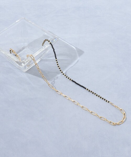 NOLLEY’S【grace grace/グラスグラス】 ◆Point ・grace graceから天然石を使用した新作ネックレスが登場 ・チェーン×天然石ミックチェーンのハーフ&ハーフのデザインが新鮮 ・マルカンをチェーン部分の好きな位置で止められるので、Y字になったり様々なアレンジが可能 ・華奢なシルエットで、お手持ちのアクセサリーとの重ね付けもおすすめです。 ※同型石違い(6-0132-3-11-212)もございます。 【grace grace (グラスグラス)】 2024AWデビュー・ノーリーズのアクセサリーブランド。 シンプルで美しいスキンジュエリー”ジュエリーシリーズ”と、重ねるごとに自分だけのものになっていくシーズンごとに楽しめる飽きのこない”レイヤードシリーズ”で構成。決して主張せず、様々なスタイルに溶け込む肌馴染みの良いアクセサリーブランドです。 Ti sentral sempre piu sicuro di te ~あなたはますます自分に自信を持つようになるでしょう~ そんな願いを込めて。 身につける人のお守りになってくれるアクセサリーです。 ●お取扱い上のご注意● ※アテンションタグを必ずご確認の上、着用又はお取り扱い下さい。 気になる商品は、お気に入り登録がオススメです! クーポン情報、入荷情報が、通知されるようになります。 ※店頭及び屋外での撮影画像は、光の当たり具合で色味が違って見える場合があります。 商品の色味は、スタジオ撮影の画像をご参照下さい。 ※商品画像に関しては出来る限り忠実に表示出来るよう努めておりますが、 お客様がご利用のモニターの設定及び特性により、実際の商品と比較し色味に若干の誤差が生じる場合があります。