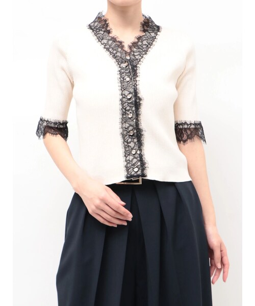 レースフリルリブニット