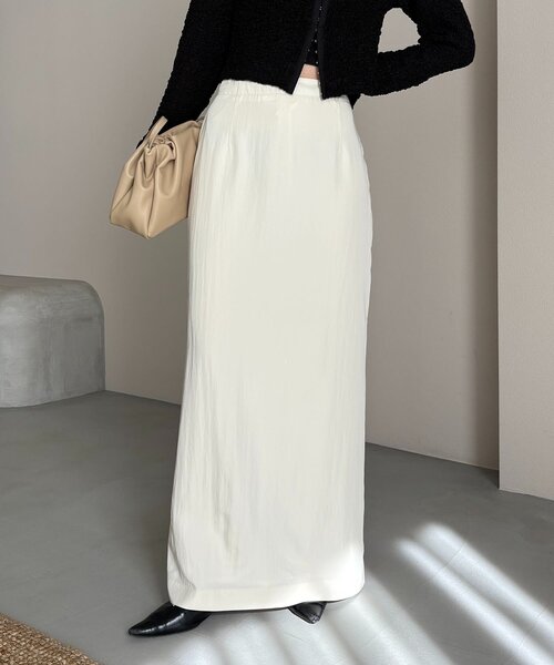 2/12(木) 12:00発売! レマージュインフルエンサー【@mana_lemage】プロデュースアイテム! きれいめとカジュアルさの絶妙なバランスがポイント。 Iラインシルエットでスタイルアップ効果があり、自信を持って着ていただける1着に! 商品ポイント ・落ち感のあるとろみスカート ・バイアススカートほどきれいめ過ぎず、程よいカジュアルさがある1枚 ・ストンと落ちるマキシ丈でずるっと履ける丈感 ・すっきり履きたい方はウエストのドロストでしめても◎ ・ベーシックで着まわしやすいカラー展開 スタイリングポイント ・シャーリングホックブラウスと合わせてきれいめに ・大人カジュアルにリブニットやロンTなどとの合わせもおすすめ 【エクリュ着用アイテム】【mana企画】シャーリングホックブラウス 【ブラック着用アイテム①】【mana企画】シャーリングホックブラウス 【ブラック着用アイテム②】カシュクール袖レーススウェット ********************** 透け感:なし 裏地:あり 伸縮性:なし 光沢感:なし ********************** ▼洗濯方法 ドライクリーニング ※撮影場所やお使いのモニター環境により若干お色味が異なる場合がございます。 特にロケの撮影では明るく見える傾向にございます。 ※商品はサンプルで撮影をしております。若干の仕様が変更になる場合がございますので予めご了承の上ご注文くださいますようお願いいたします。 ▼商品のお気に入り登録 完売カラーの再入荷通知や、ラスト1点の通知、セールの通知も受け取ることができます。 ▼ブランドのお気に入り登録 新商品や再入荷など、いち早くブランドのお得な情報を受け取ることができます。