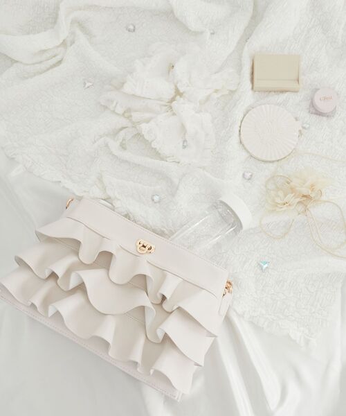可愛いだけじゃない、さらに使いやすく。 履き心地とバリエーションを追求したMAJESTIC LEGONのシューズ&バッグメインのGOODSライン 「Mimi」(ミミ) 可愛さも収納力も妥協しない。3層仕切りのフリルバッグ ■デザイン 立体感のあるフリルデザインが目を惹く、360度どこから見ても可愛いフリルバッグ。 甘さのあるルックスにゴールド金具とチェーンを合わせることで上品さをプラスしました。 内側は3層に分かれた仕切り構造になっており、荷物をすっきり整理できるのがポイント。 スマホや小物はもちろん、500mlのペットボトルも収納可能な見た目以上の収納力を備えています。 小物が収納できる内ポケット付きで、可愛いだけでなく実用性にもこだわったデザインです。 取り外し可能なショルダーストラップもあり、ハンドバッグ・ショルダーバッグの2WAYでお使いいただけます。 ■サイズ感 日常使いにちょうど良いミディアムサイズ。 スマホ・ミニウォレット・ポーチなどの必需品に加え、 500mlペットボトルも収納できる容量があり、安心感のあるサイズ感です。 3層仕切り仕様で、バッグの中がごちゃつきにくく取り出しもスムーズ。 ■スタイリング 華やかなデザインなので、シンプルなコーディネートのアクセントにおすすめ。 デイリーのお出かけはもちろん、旅行やイベント、推し活など 荷物が増えがちなシーンにも活躍するバッグです。 ■商品のお気に入り登録:再入荷通知やのこりわずか、お得なプライスダウンの情報も受け取ることができます。 ぜひご登録ください◎ ※サンプルでの撮影の為、製品と仕様が異なる場合がございます。 ※商品の色味は、撮影場所や光のあたり具合などにより色味が違って見える場合がございます。 また、お客様のお使いのモニター環境などにより色味が異なって見える場合がございます。 予めご了承の上ご注文下さい。