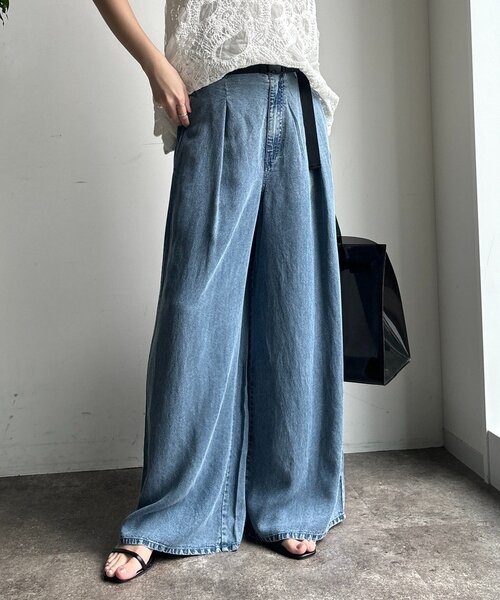 ■2026 SPRING & SUMMER ITEM■ ベルトが映える軽やかデニムパンツ リラックス感と上品さを兼ね備えたリヨセルデニムパンツ。 落ち感のある生地が生み出す縦のラインが脚のラインを自然にカバー。 ワイドシルエットでも広がりすぎず、すっきりとしたバランスで着こなせます。 フロントに施されたタックが立体感を生み、動きのあるシルエットを演出。 付属のベルトがさりげないアクセントに。トップスをインしたスタイルもきれいにまとまり、コーディネート全体を引き締めます。 - POINT - ・リラクシーな着心地 ・ベルトがアクセントに ・落ち感ワイド -------------------------------- 洗濯:手洗い可能 透け感:なし 裏地: なし 伸縮性: なし 光沢感: なし -------------------------------- 【 ♡ をクリックでお得な情報をお知らせいたします 】 〈 商品のお気に入り登録 〉 お気に入りアイテムのお値下げ・再入荷・在庫ラスト1点など通知を受けることができます。 〈 ブランドのお気に入り登録 〉 DOUDOUの新商品や再入荷、セール、クーポン配布などお得な情報を受けることができます。 -------------------------------------- ※ 生産の都合上、お届け時期が前後する場合がございます。 ※ 掲載画像の商品の色味は、 撮影場所や光の当たり具合などにより色味が異なって見える場合がございます。 また、お客様のお使いのPC・スマートフォン等のモニター環境などにより色味が異なって見える場合がございます。予めご了承の上ご注文ください。 ※ 着用、お取り扱いの際は、商品についている品質表示とアテンションタグを必ずご確認下さい。