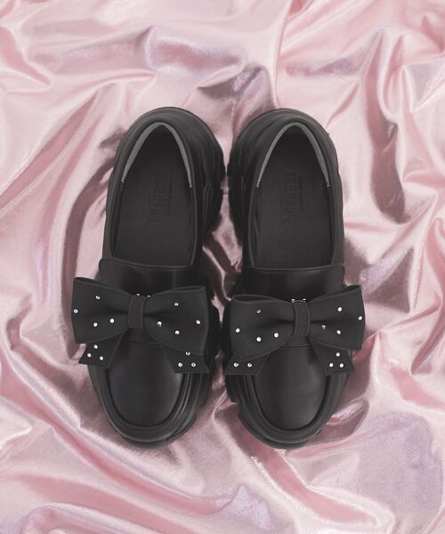 可愛いだけじゃない、さらに使いやすく。履き心地とバリエーションを追求したMAJESTIC LEGONのシューズ&バッグメインのGOODSライン「Mimi」(ミミ)甘さも歩きやすさも両立◎リボン付きスニーカーソールローファー■デザインきちんと感のあるローファーデザインに存在感のあるリボンをプラスした一足。リボンは取り外し可能なのでリボンありでフェミニンに、外してシンプルにも履ける2WAY仕様。さりげなくあしらったビジューが、足元に程よい華やかさを添えます。ボリュームのあるスニーカーソールを組み合わせることで、甘さとカジュアルさのバランスが取れたデザインに仕上げました。程よいボリュームで、スタイルアップ効果も期待できます。☆こだわりの履き心地☆・履き心地抜群のふかふかクッションを使用。・内側にふわふわのメッシュ素材を使用し、柔らかい足当たりに。・かかとにもクッションをいれることで靴擦れ防止に。・見た目以上の軽さで長時間の歩行も楽々。■サイズ感甲幅が広い方、甲高の方も履いていただきやすいサイズ感。通常よりやや大きめです。MAJESTIC LEGONシューズ対応サイズSサイズ 約22.0~23.0cm 重量318gMサイズ 約23.0~24.0cm 重量326gLサイズ 約24.0~25.0cm 重量335gXLサイズ 約25.0~26.0cm 重量344g※素材の特性により若干差異が生じる事がございます。※重量は片足の重さとなっております。■スタイリングスカートやワンピースと合わせた甘めスタイルはもちろん、デニムやスラックスと合わせたカジュアルコーデにもおすすめ。リボンの付け外しで印象を変えられるため、幅広いスタイリングに対応できるローファーです。■商品のお気に入り登録 再入荷通知やのこりわずか、お得なプライスダウンの情報も受け取ることができます。ぜひご登録ください◎※サンプルでの撮影の為、製品と仕様が異なる場合がございます。※商品の色味は、撮影場所や光のあたり具合などにより色味が違って見える場合がございます。また、お客様のお使いのモニター環境などにより色味が異なって見える場合がございます。予めご了承の上ご注文下さい。※S・XLサイズはWEB限定サイズとなります。