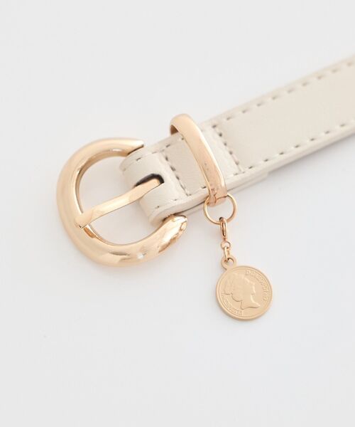 細身の合成皮革ベルトに丸みのあるゴールドバックルと揺れるコインチャームをあしらったコインベルトは、手に取ると程よい艶と重みが感じられるアクセサリー感覚の一品です。スリム設計でウエストをさりげなく引き締め、デニムやワンピースに控えめな華やぎをプラスして普段の着こなしをグッと格上げします。ハイウエストジーンズのベルトループに通してカジュアルに、ニットやワンピの上からウエストマークしてフェミニンにと、着回しの幅が広がる万能アイテムです。※モデル着用画像は光の当たり具合で色味が違って見える場合がございます。商品の色味は物撮りの画像をご参照ください。● earth music&ecology ●(アースミュージック&エコロジー)「いいことある服。」たかが服。されど服。波風の多い日々のなかでもほほえんで前を向くあなたを、つつんで一緒に歩きたい。 いいことあるかも。そんな期待までまとえる服をあなたに。earth music&ecologyは、毎日を頑張る女性たちをちょっと前向きにするブランドです。 ▼ 商品のお気に入り登録がおすすめです ▼商品ページ内の「♡」ハートマークをクリック。完売時の再入荷や、最後の1点の通知、コーディネート画像がアップされたとき、お得なお値下げの際の通知を受ける事ができます。【お知らせ】ページでも通知が確認できます。