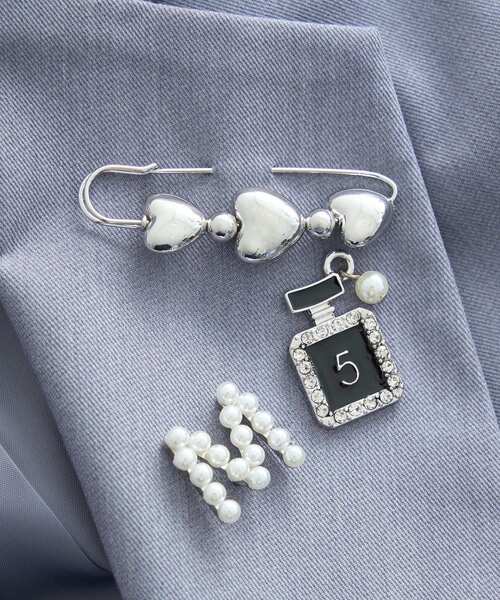 胸元にきらめくおしゃれなアクセント 印象的なモチーフを集めたブローチセットです。ハートやパール、香水ボトル風デザインがそれぞれ異なる魅力を放ち、コーディネートのアクセントとして活躍します。 シンプルなトップスやアウターに添えるだけで、トレンド感のあるスタイルが完成します。 複数を重ねて華やかに仕上げたり、ひとつだけをポイント使いしたりと、アレンジの幅が広いのも魅力です。 バッグや帽子に付けるなど、使い方次第でさまざまな表情を楽しめます。 季節を問わず取り入れやすく、デイリーから特別な日まで幅広く使える万能アイテムです。装いにさりげない輝きと個性をプラスしてくれます。 ※モデル着用画像は光の当たり具合で色味が違って見える場合がございます。商品の色味は物撮りの画像をご参照ください。 ● earth music&ecology ● (アースミュージック&エコロジー) 「いいことある服。」 たかが服。されど服。波風の多い日々のなかでもほほえんで前を向くあなたを、つつんで一緒に歩きたい。 いいことあるかも。そんな期待までまとえる服をあなたに。 earth music&ecologyは、毎日を頑張る女性たちをちょっと前向きにするブランドです。 ▼ 商品のお気に入り登録がおすすめです ▼ 商品ページ内の「♡」ハートマークをクリック。完売時の再入荷や、最後の1点の通知、コーディネート画像がアップされたとき、お得なお値下げの際の通知を受ける事ができます。 【お知らせ】ページでも通知が確認できます。