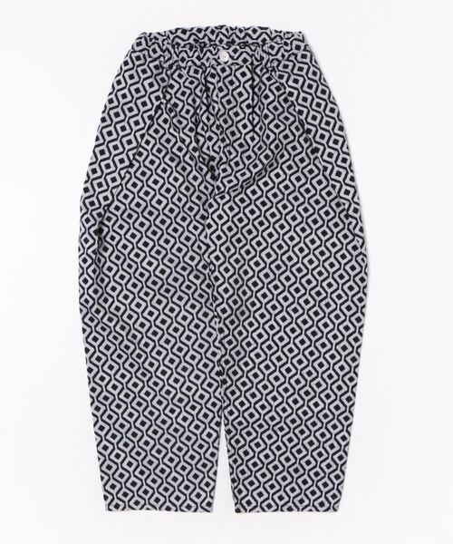 モノトーン配色のドットジャガードとダイヤ柄ジャガードの素材切替がインパクトのある立体的なパンツ。1枚で主役級の存在感なので、シンプルなシューズや無地のスニーカーなど足元をシンプルにし、フォルムの存在感をアピールしたい。色展開はモードなコーディネートにも活躍する「ブラック」「ホワイト」、POPな印象の「レッド」「ブルー」の4色展開です。