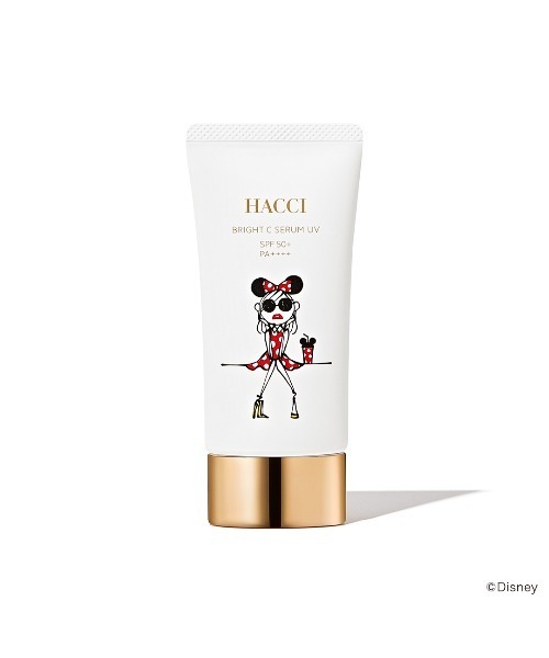 今年のHACCIのUVシリーズは、ファッションディレクター(Daichi Miura)が描く『DiDi La Chignon』をあしらった特別なディズニーデザインでお届け。 DiDi La Chignon 「ディディ・ラ・シニョン」は、自分らしいおしゃれを楽しむファッショニスタ。 ディズニーのエッセンスと彼女の感性が響き合い、特別な魅力を放ちます。 【ブライトCセラムUV】 6種のビタミンCをブレンド 透明感と潤いを底上げする美容液 UVSPF50+/PA++++ 内容量:50g はちみつを8%以上高配合 6種類のビタミンCをブレンド 透明感と潤いを底上げ HACCI UVコレクション 最高クラスの紫外線防御効果しっとり軽やかなテクスチャー フレッシュフローラルの香り <How to use> 適量を手に取り、顔・首にていねいに伸ばしてなじませます。 汗をかいたり、タオルで拭いた後などはこまめに塗り直してください。 <Fragrance> フレッシュフローラル〈ラシェリ〉 ジャスミンとローズのフローラルブーケに、清楚なハニーサックルとリーフィーグリーンを重ね、みずみずしいプラムのアクセントを添えたフレッシュフローラルの香り。 ラシェリ(CHÉRIE)とは… フランス語で“愛しい人”“大切な人”を意味します。 【ご使用上の注意点】 ・お肌に異常が生じていないかよく注意して使用してください。化粧品がお肌に合わないとき、即ち次のような場合には、使用を中止してください。そのまま化粧品類の使用を続けますと、症状を悪化させることがありますので、皮膚科専門医等にご相談されることをおすすめします。 (1)使用中、赤味・はれ・かゆみ・刺激・色抜け(白斑等)や黒ずみ等の異常があらわれた場合。 (2)使用したお肌に、直射日光があたって上記のような異常があらわれた場合。 ・傷やはれもの、しっしん等、異常のある部位にはお使いにならないでください。 ・目に入らないようご注意ください。 ・目に入った場合は、こすらずにすぐに水かぬるま湯で洗い流してください。 ・すすいでも目に異物感が残る場合は、眼科専門医へご相談ください。 ・ご使用の際は、衣服等につけないようにご注意ください。衣服等についたときは、すぐに洗剤でていねいに洗ってください。洗う際には、変色(着色)する恐れがありますので、塩素系漂白剤のご使用は避けてください。 ・商品の性質上、透明な液体が出ることがありますが、品質に問題はありませんのでよくなじませてご使用ください。 ・温度によってクリームの硬さが変化することがありますが、品質上問題ありません。 ・ご使用後は、容器の口もとをきれいにふき取り、キャップをきちんと閉めてください。 ・直射日光のあたる場所、極端に高温・低温の場所を避け、乳幼児の手の届かない所に保管してください。