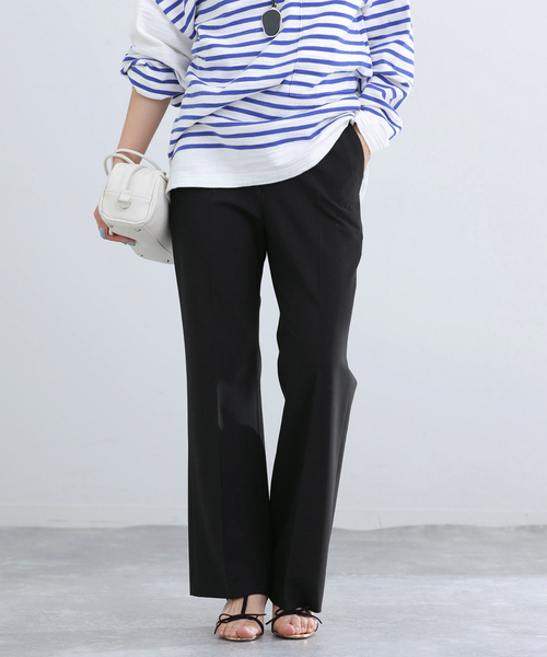 【2026SS】 IENA 程よく広がるセミフレアシルエットが、脚のラインを自然にきれいに見せてくれるパンツ。 センタープレスを効かせることで縦のラインを強調し、フラットシューズでもすっきりとした印象に仕上げています。 ポリエステルをベースにウールをブレンドした素材は、軽やかでシーズンレスに活躍。 ウール混でありながら重さを感じにくく、ストレッチ性があるため動きやすさも兼ね備えています。 ご自宅で手洗い可能なのも、デイリーに取り入れやすい嬉しいポイント。 きれいめなブラウスからカジュアルなカットソーまで幅広く合わせやすく、 オン・オフ問わず頼れる一本です。 ********************** 透け感:なし 裏地:なし 伸縮性:ややあり 光沢感:なし 生地の厚さ:普通 ********************** ※取り扱いについては、商品についている品質表示でご確認ください。 ※こちらの商品は、IENAでの取り扱いになります。 直接店舗へお問い合わせの際はIENA店舗へお願い致します。 ※照明の関係により、実際よりも色味が違って見える場合があります。 またパソコン・スマートフォンなどの環境により、若干製品と画像のカラーが異なる場合もございます。 予めご了承ください。 ※商品の色味は、商品アップ画像をご参照ください。 本体:手洗い可能