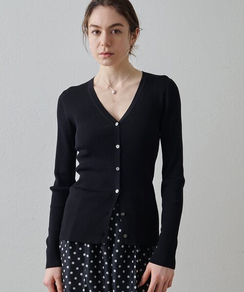 【2026SS】 万能に使える、ミニマルなリブニットカーディガン ■クラシックなデザインのリブニットカーディガン。 ■デコルテがきれいに見えるVネックが女性らしい一枚。 ■タイトすぎず緩すぎない程よいサイズ感も嬉しいポイント。 ■タンクトップの上にサラッと羽織っても、ボタンを閉じてプルオーバー感覚で着用しても◎。 ■シンプルなデザインで合わせやすく、一枚着としてもインナーとしても重宝するアイテム。 【MATERIAL】 シャリ感のあるさらりとした肌触りのリブニット。 ---------------------------------------------------- 洗濯方法:手洗い可 透け感:ホワイトのみややあり 裏地:なし 伸縮性:あり 光沢感:なし ---------------------------------------------------- 【注意事項】 ・画像の商品はサンプルです。実際の商品と仕様、加工が若干異なる場合があります。 また 、パソコンやスマートフォンのモニター環境などにより、色味が違って見える場合があります。 ・店頭及び屋外での撮影画像は、光の当たり具合で色味が違って見える場合があります。 商品の色味は、スタジオ撮影の画像をご参照ください。 ・入荷状況により、お届け予定が前後する場合があります。 ・お客様への発送が店頭販売より遅れる場合があります。 ・追加生産商品は、一部の店舗、通販で販売中の場合があります。 予めご了承下さい。 【気になるアイテムは、「お気に入り」登録を】 ハートマークをクリックしておくことで、スムーズにお買い物が楽しめます。 ・ラスト一点のお知らせ ・再入荷のお知らせ ・SALEのご案内