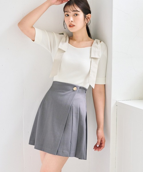 アシメ風に施したプリーツデザインのミニスカート。ミニ丈でも大人っぽく上品に見せてくれるアイテム。 シンプルながらもさりげないゴールドボタンがアクセントに! トップスを選ばず着回し力も抜群◎ 幅広いスタイリングが楽しめる一枚です。 ★《お気に入り登録》でお得な情報をGET★ ・「商品のお気に入り登録」で再入荷通知やラスト19の通知、セールやクーポンの通知も受け取ることができます!→ハートマークをクリック ・「ブランドのお気に入り登録」で新商品や再入荷など、お得な情報を受け取ることができます!