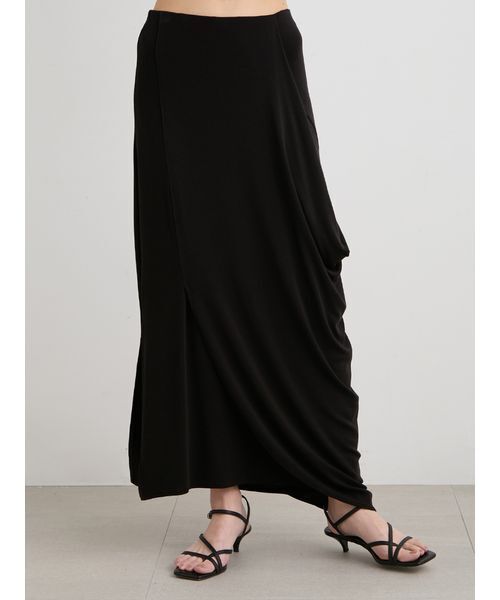【DESIGNPOINT】アシンメトリーなドレープデザインが特徴のイージーSK。しなやかなカットソー素材なのでコンフォートに過ごせます。オリジナルのデザイン性があるので一枚でコーデが決まるのも嬉しいポイント。モード感と女性らしさを兼ね備えたSKです。【FABRIC】透け感:ややあり/裏地:有り/伸縮性:有り※照明の関係により、実際よりも色味が違って見える場合があります。またパソコン・スマートフォンなどの環境により、若干製品と画像のカラーが異なる場合もございます。予めご了承ください。商品の色味は、商品単品画像をご参照下さい。 ※商品画像はサンプルのため、色味やサイズ等の仕様に変更がある場合がございますので、予めご了承ください。