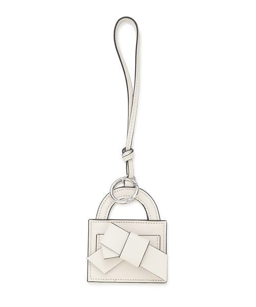 【人気のリボンバッグがチャームに。ミラー付きで実用性も◎】 【Design/Styling】 FRAY I.Dで大人気のリボンミドルバッグがそのまま小さくなったような、遊び心が詰まったストラップ付きリボンチャーム。 なめらかな合皮素材に細かなステッチを施し、高級感たっぷりにお作りしました。 裏面にはミラーを仕込んで実用性もプラス。 身だしなみチェックもさりげなくスマートに行えます。 可愛さと使いやすさを兼ね備えたアイテムは、ギフトにもぴったり。 洗練されたWHT、スイートなLPNK、差し色にも使えるLBLU、シックなBLKの4色展開です。 ※照明の関係により、実際よりも色味が違って見える場合があります。予めご了承ください。 またパソコン・スマートフォンなどの環境により、若干製品と画像のカラーが異なる場合もございます。予めご了承ください。 商品の色味は、商品単品画像をご参照下さい。 ※商品画像はサンプルのため、色味やサイズ等の仕様に変更がある場合がございますので、予めご了承ください。