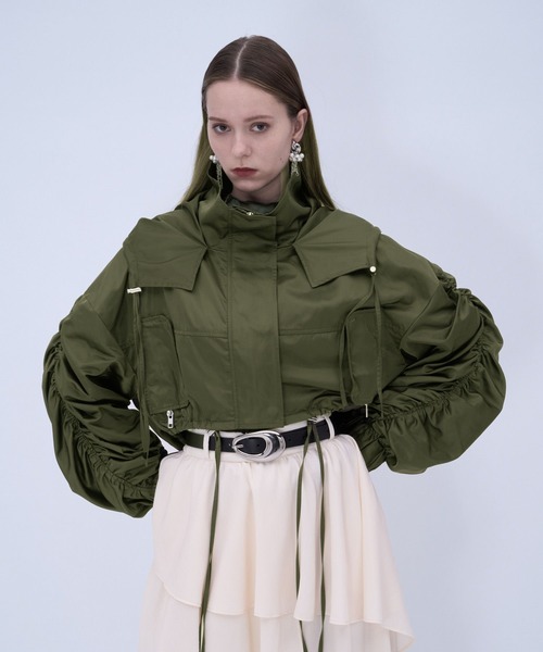 ーーー ボリューム感の出るギャザーが入った モードに着れるサテンマウンテンパーカー ーーー point □袖全体のギャザーデザインが女性らしい華やかさをプラス □トレンドのクロップド丈ですっきりとした印象に □フードやフロントはドローコード付きでシルエットを変えられる □スタンドカラーでも着用可能 □軽やかでさらりとした肌触りで季節の変わり目に着やすい素材を使用 □光沢感があり、カジュアル過ぎないアイテム styling 骨格ナチュラル:太めのカーゴパンツやワイドデニムを合わせ、上下にボリュームを持たせると似合います。襟を少し後ろに抜いて着るとこなれ感が出てオススメです。 骨格ウェーブ:ハイウエストボトムスがオススメ。袖のギャザーを少し捲り上げて手首を見せると華奢さが協調されてバランスが綺麗です。インナーはジャストサイズのものを合わせ、インすると脚長効果になります。 骨格ストレート:タイトスカートやストレートシルエットのボトムスなど腰回りがスッキリとしたボトムスを選ぶと◎足元はキレイめなパンプスやヒールを合わせると大人モードなスタイルに。 ※加工を施した画像を使用しております。 実物と色味が異なる可能性があるため、色味は詳細後ろにある生地寄り画像を参考にお願いいたします。 あらかじめご了承下さい。