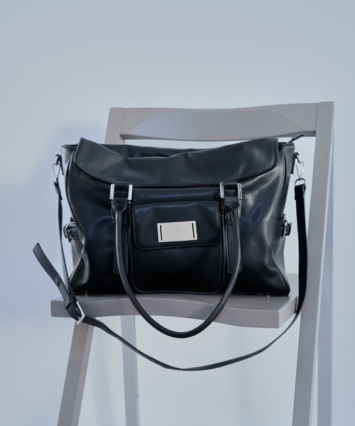 ーーーメタルプレートがポイントの実用的大容量ボストンバッグーーーpoint□フロントのメタルプレートがシャープな印象のビッグバッグ□PCやA4サイズのものも入る大容量サイズ□横長の長方形でビジネスからデイリーで使いやすい□肩掛けしやすいハンドルとショルダー用のストラップもありシーンで使い分けができる□トラベルにも持っていきやすい、キャリーケースに固定できるバンド付き□外側と内側にポケット付きで小物を収納しやすいstylingフラップ部分は2枚重ねて前に倒すスタイル、1枚ずつ前後で倒すスタイルどちらも使えます。大容量で収納もしやすいのでビジネスシーンでも活躍するデザインです。シンプルなスタイリングにも全体が引き締まって見えるのでカジュアルなスタイルにも合わせられます。※加工を施した画像を使用しております。実物と色味が異なる可能性があるため、色味は詳細後ろにある生地寄り画像を参考にお願いいたします。あらかじめご了承下さい。