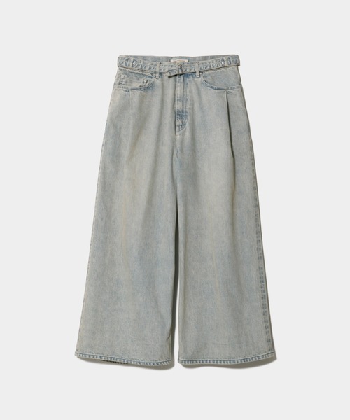 【デザインの特徴】 ・5ポケットパンツ ・セミワイドレッグ ・裾にフリンジ加工 ・シンチバックル仕様のベルト付き ・リラックスフィット ・ミドルウエスト ・クロップドレングス 【素材のこだわり】 ・定番の12オンスセルビッチデニム ・生地端の耳部分に織りで表現した赤と青のドビーステッチ ・ネームタグは牛革に防縮加工を施したものを使用 ・インディゴデニムにベージュウォッシュ加工 ・ブラックデニムにサックスウォッシュ加工