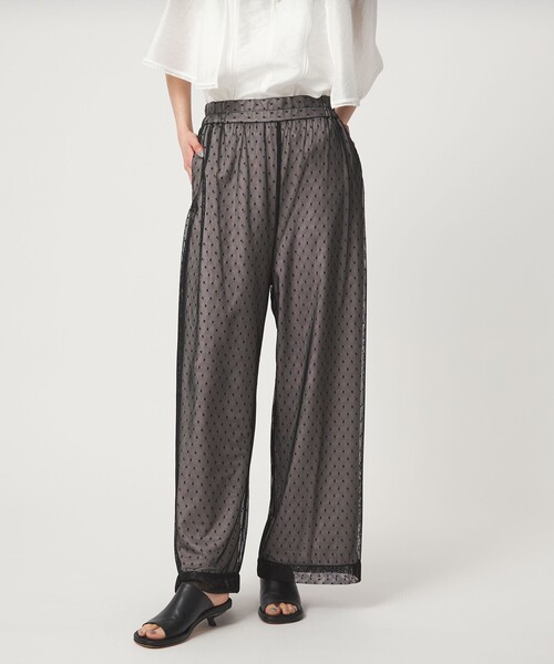 スタイリングの主役になるドットチュールを重ねたパンツ■デザインドットチュールを重ねてフェミニンにはいていただけるバランスでお作りしたレイヤーパンツ。ウエストはゴムなので着心地が楽なのもうれしいポイント。■素材杢感のあるクラシックな雰囲気の生地をベースに、小さなドット柄のチュールをレイヤード。印象の違う2種類の生地を重ねることでモードでキャッチーな見え方に。■コーディネート無地のブラウスやカットソーに合わせてコーディネートのポイントにした着こなしがおすすめ。ローファーと合わせたトラッドな着こなしも固い印象になりすぎずフェミニンに着られる一枚です。#春服,#春物,#夏服,#夏物,#26SS,#チュール,#レイヤード,#イージーパンツ============================裏地:なし透け感:なし伸縮:なし光沢感:なしケア方法:手洗い可============================< EMMEL REFINES(エメル リファインズ) >Pleasure ~今を楽しみ、変化を楽しむ~EMMEL REFINESは変化していく時代やトレンドを恐れなく前向きに楽しみ、今に満足せず常に自分を更新していきたい、自分らしさを表現したい女性に向けたブランドです。女性の共感を大切に、時代にフィットした新しいスタイルを提案します。【注意事項】※画像の商品はサンプルです。実際の商品と色味、仕様、加工、サイズ、素材等が若干異なる場合がございます。※工場の生産の都合上、納期が変更になる場合がございます。発送日の前後についてはあらかじめご了承ください。※入荷状況により、お客様への発送が店頭販売より遅れる場合もございます。※商品に「取り扱い上の注意書き」、「洗濯表示」がございます場合は、使用前に必ずご確認ください。※商品画像は、光の当たり具合やパソコンなどの閲覧環境により、実際の色味と異なって見える場合がございます。あらかじめご了承ください。※商品の色味の目安は、商品単体の画像をご参照ください。お問い合わせの際は、ユナイテッドアローズ カスタマーサービスデスクまで下記の品名/品番をお申し付けください。品名:EM DOTチュール レイヤーPT 品番:66146000007