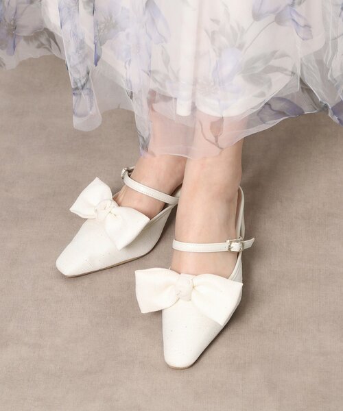 さっと履けて、可愛く決まる!ミュールタイプのパンプスです。 トレンド感のあるちょびスクエアトゥに、華奢な細ストラップを合わせた上品なデザイン。 リボンは取り外し可能で、シーンに合わせて表情を変えられる2WAY仕様。 抜け感のある大人カジュアルフェミニンなスタイルなぴったりの一足です。 【備考】 ※商品画像はサンプル商品の為、仕様やカラー等に変更がある場合がございます。予めご了承ください。 ※光の当たり具合で色味が違って見える場合があります。 ※照明の関係により、実際よりも色味が違って見える場合があります。また、パソコン・スマートフォンなどの環境により、若干製品と画像のカラーが異なる場合もございます。 スタッフM:普段のサイズ24.5cm S・M・Lの時は基本はLサイズ ワイズ2E~3E 《特徴》足幅は広めです。甲厚め ----------------------- 試着サイズ:L(24.0~24.5cm) 見た目は細めですが履いてみると窮屈感はなく履けます。サイズはLがちょうどよくかかとが低いので立っていても座っていてもとても足が楽です。フロントのストラップがあることで脱げやすくなることもなくきちんと感が増します。着脱はストラップを都度取り外しは必要です。フロントのリボンは取外し可能なところもいいです。 店舗へのお問い合わせ商品番号:P06-15210 ●製品寸法: S(22.0cm-22.5cm):ヒール高5cm M(23.0cm-23.5cm):ヒール高5cm L(24.0cm-24.5cm):ヒール高5cm LL(24.5cm-25.0cm):ヒール高5cm 備考:重量:片足約180g(サンプルサイズ)